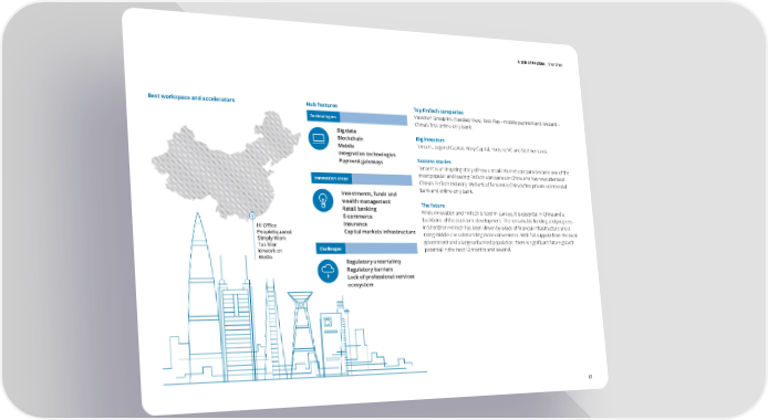 A tale of 44 cities | Shenzhen S e l f e v a u l a t i o n o f tH h eu hb u bi in nd i sc High Rankixa t ko e yr s a r e a Shenzhens Best workspace and accelerators Hub features Top FinTech companies Hub profile Technologies Viewtran Group Inc (Nasdaq: View), Ibox Play – mobile payment and Webank – Sha China’s first online-only bank. n gh Big data LaiG Big investors io Blockchain sv be or Tencent, Legend Capital, Hony Capital, Fortune VC and SILK Ventures. nn Mobile m e Gn l o b a l F Integration technologies it Cn es n t r Seu Success stories 2p h2 Payment gateways enp zo h Tencent is an inspiring story of how a small internet company became one of the enr nt most popular and leading FinTech companies in China and has revolutionised o i t a Innovation areas v o China’s FinTech industry. WeBank of Tencent is China’s first private commercial n n PI r agl bank and online-only bank. ueax beD Investments, funds and o ld7Bo Gn58ui I2sn ig wealth management n The future eIn s sn Retail banking INDEX SCOREo While innovation and FinTech is ‘cool’ in Europe, it is essential in China and a va E-commerce t backbone of the economic development. The remarkable funding and progress Brusselsi o Insurance Shenzhen is located in a special economic zone and is known as c n Hi Office in Shenzhen FinTech has been driven by a lack of financial infrastructure and a the “Silicon Valley of China”. It ranks first in China for the volume 125utlu PeopleSquared Capital markets infrastructure rising middle class demanding more convenience. With full support from the local of patent filings and is also the heart of the Internet of Things (IoT) er Simply Work government and a large unbanked population, there is significant future growth Tus Star Challenges potential in the next 12 months and beyond. manufacturing world. The government has ambitious plans and Urwork.cn policies to support the development of the fintech industry. Low Rank WeDo Regulatory uncertainty Regulatory barriers e Lack of professional services rtis ecosystem Reguxpe latto e ionity xim Pro Hub representativeFoers Silk Venturesreign custom startupsximity to CEOPro Angelica Anton 63