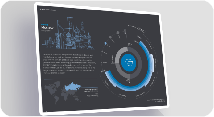 A tale of 44 cities | Moscow S e l f e v a u l a t i o n o f t H h e u h b u b i i n n d i s c High Rank ix a t k o NEW HUB e y r s a r e a Moscow s Hub profile B an gko B k G u o v d e a r p n es m t e G n l o b a l F i t C n e s n t r M e u 8 p o 4 s p cow o r t I s tanb ul n o i The Russian Hub is well recognised for its technological talent pool, t a v o In AlfaCamp especially in areas such as cyber-security, data analytics and web n n n Generation S I o al x INDEX SCORE v HSE Pro FinTech programming. With the ambitious state plan to turn Moscow into a b e a o d t l n 3 i o Innopolis global financial centre and strong government support for innovation, Manama G I 4 n uc InspiRussia the FinTech industry is quickly gaining pace both in terms of the 167 rutl Internet Initiatives number of startups and VC investments. Moreover, being one of the e Development Fund QIWI Universe largest consumer markets in the world, Russia has a great scope to Skolkovo Fintech Hub increase financial inclusion. Low Rank tise Re BuDoing per gu siness ex lati 40 to on mity oxi Hub representative Pr Skolkovo FinTech Hub CEO For mers Viktor Vekselberg eign st o custo artups Proximity t Source: Global FinTech Hubs Federation Produced by Deloitte 54