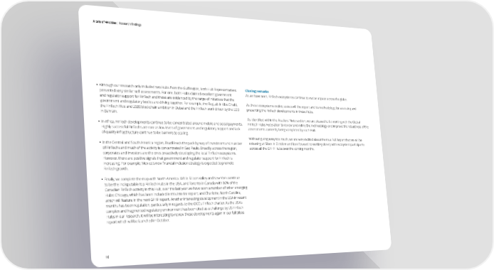 A tale of 44 cities | Research findings • Although our research only included two Hubs from the Gulf region, both Hub Representatives Closing remarks presented very similar self-assessments. For one, both Hubs claimed excellent government As we have seen, FinTech ecosystems continue to evolve at pace across the globe. and regulator support for FinTech and these are evidenced by the range of initiatives that the government and regulatory bodies are driving together. For example, the RegLab in Abu Dhabi, As these ecosystems evolve, so too will the report and its methodology for assessing and the FinTech Hive and 2020 blockchain ambition in Dubai and the FinTech work driven by the EDB presenting the FinTech developments in these Hubs. in Bahrain. As identified within the Readers’ Note section, we are pleased to be working with the Global • In Africa, FinTech developments continue to be concentrated around mobile and social payments. FinTech Hubs Federation to review and refine the methodology and improve the robustness of the Highly successful FinTechs are rare as low levels of government and regulatory support and lack assessments currently being completed by each Hub. of quality infrastructure continue to be barriers to scaling. Without giving away too much, we are very excited about the new Full Report that we will be • In the Central and South America region, Brazil leads the pack by way of investment and number releasing at Sibos in October and look forward to working closely with ecosystem participants of FinTechs and much of the activity is concentrated in Sao Paulo. Broadly, across the region, across all the GFHF Hubs over the coming months. corporates and investors are the ones proactively developing the local FinTech ecosystems. However, there are positive signals that government and regulator support for FinTech is increasing. For example, Mexico’s new financial inclusion strategy is expected to promote FinTech growth. • Finally, we complete the map with North America. While Silicon Valley and New York continue to be the indisputable top FinTech Hubs in the USA, and Toronto in Canada with 80% of the Canadian FinTech activity in this Hub, over the last year we have seen a number of other emerging Hubs: Chicago, which has been included in this Interim report; and Charlotte, North Carolina, which will feature in the next GFHF report. Another interesting development in the USA in recent months has been regulation, particularly in regards to the OCC’s FinTech charter. As the USA’s complex and fragmented regulatory environment has been cited as a challenge by US FinTech Hubs in our research, it will be interesting to review these developments again in our full Sibos report which will be launched in October. 16