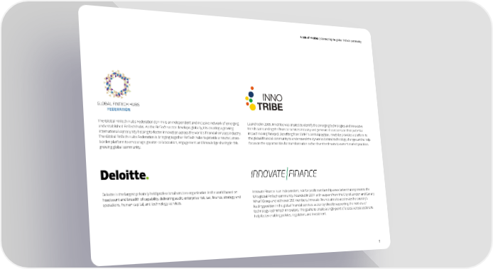 A tale of 44 cities | Connecting the global FinTech community GLOBAL FINTECH HUBS FEDERATION The Global FinTech Hubs Federation (GFHF) is an independent and inclusive network of emerging Launched in 2009, Innotribe was created to identify the emerging technologies and innovative and established FinTech hubs. As the FinTech sector develops globally, it is creating a growing trends surrounding the financial services industry and generate discussions on their potential international community helping to foster innovation across the world’s financial services industry. impact moving forward. Benefiting from SWIFT’s central position, Innotribe provides a platform to The Global FinTech Hubs Federation is bringing together FinTech hubs to provide a neutral, cross- the global financial community to understand the dynamics behind technology changes and to help border platform to encourage greater collaboration, engagement and knowledge sharing in this focus on the opportunities for transformation rather than the threats to current market practices. growing global community. Deloitte is the largest privately held professional services organization in the world based on Innovate Finance is an independent, not-for profit membership association that represents the headcount and breadth of capability, delivering audit, enterprise risk, tax, finance, strategy and UK’s global FinTech community. Founded in 2014 with support from the City of London and Canary operations, human capital, and technology services. Wharf Group and with over 250 members, Innovate Finance aims to accelerate the country’s leading position in the global financial services sector by directly supporting the next era of technology-led FinTech innovators. The goal is to create a single point of access across sectors to help foster enabling policies, regulation, and investment. 5