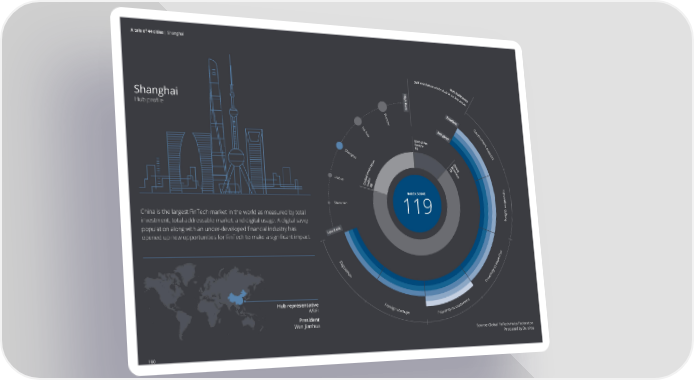 A tale of 44 cities | Shanghai S e l f e v a u l a t i o n o f t H h e u h b u b i i n n d i s c High Rank ix a t k o e y r s a r e a Shanghai s Hub profile W a r s aw G T o Cloud Valley el v A e iStart v r i n v m KIC e G n l o b a l F i t C n People Squared e s n t r e u 1 p S 6 p Sinovation Ventures h o ang r YBC h t ai n D o o i B t u i a 7 s n v 8 i g o n n e n s I s L l i a s bo b x n o e l d G n 5 I 2 In n INDEX SCORE o v a t Shenzhen i o c n China is the largest FinTech market in the world as measured by total 119 utlu investment, total addressable market, and digital usage. A digital savvy er population along with an under-developed financial industry has opened up new opportunities for FinTech to make a significant impact. Low Rank tise Re per gula o ex tion ty t imi rox P Hub representative For mers ASIFI eign st o custo artups Proximity t President Wan Jianhua Source: Global FinTech Hubs Federation Produced by Deloitte 100