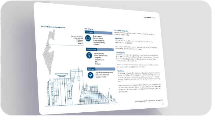 A tale of 44 cities | Tel Aviv S e l f e v a u l a t i o n o f tH h eu hb u bi in nd i sc High Rankixa t ko e yr s a r e a Tel Avivs Best workspace and accelerators Hub features Top FinTech companies Hub profile Technologies Payoneer, Etoro, Sapiens, Credorx, Tipalti, Fundbox, Forter, Zooz, Personetics, K Lemonade, Riskified, Behalf. uala Lump G Data analytics Wo Barclays Techstars Digital identity Big investors auv rre Citi Accelerator sr Corporate VC’s: Microsoft, Samsung, Intel, IBM, Deutsche Telekom, Cisco, awn Cloud computing m Mindspace e Nautilus by AOL , 500 Startups. Gn l o b a l fi The Floor Machine learning nt C es n t r eu We Work 3p T8p Robotics eo l Local VC’s: Jerusalem Venture Partners, Magma Venture Capital, Carmel Ventures, r At v i vn o i Aleph, Pitango, 83North and many angel investors. t a v Innovation areas o n n I l ax Success stories be o Sld Cyber security hGn anI1 CheckPoint is the largest pure-play security vendor globally and remains a leader gha2 i Fraud detection and in the 2016 Gartner Magic Quadrant for Unified Threat Management. They secure The Israeli Hub is mostly known for its technological talent poolIn mitigation n INDEX SCOREo more than 100,000 businesses and millions of users worldwide and has the which includes special units of army-trained entrepreneurs whova Robo advisors t industry’s highest malware catch rate. Lisboni o KYC are bold, innovative and creative. Israel has a strong risk-taking spirit c n where failure is seen as an opportunity to learn, and there is an 111utlu Analytics Other success stories include FundTech which was acquired in 2015 for $1.25bn entrepreneurial hunger to succeed in scale. The fact that the Israeli er and Payoneer which raised $180m in October 2016. market is very small creates ventures that design their products Challenges Low Rank5 The future that cater to the European/US markets from the get-go.2uBD Significant time difference enisnio We foresee an increase in the number of venture capital-backed companies that ssg Small size of market focus on InsurTech and AI. Financial services will become more digital and digital se Isolated market banks, such as Pepper, will emerge. We expect the increasing number of foreign Rrti egxpe R&D centres being set up in Israel, e.g., JP Morgan R&D centre, to be a continuing ulatio to e trend. nity xim While Israel is a small and isolated market, it can be seen as an advantage in terms Pro of international collaboration. It forces the local industry to focus on larger global markets. As such, the payments and trading systems that emerged in Israel are Hub representativers geared globally. Startup Nation CentralForeigstome n startupity to cu sProxim Data to be updated in full report (Sibos, October 2017) 109