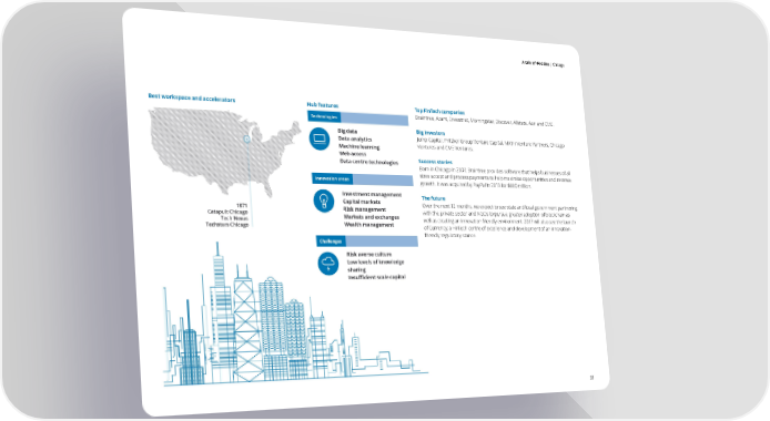 A tale of 44 cities | Chicago S e l f e v a u l a t i o n o f tH h eu hb u bi in nd i sc High Rankixa t ko e yr s a r e a Chicagos Best workspace and accelerators Hub features Top FinTech companies Hub profile Technologies Braintree, Avant, Envestnet, Morningstar, Discover, Allstate, Aon and CME. New Yor Big data Big investors SikG Jump Capital, Pritzker Group Venture Capital, MATH Venture Partners, Chicago lico Data analytics ov ne r Ventures and CME Ventures. Vn Machine learning am l le eGn yl o b a l F Web access it Cn es n t r Ceu hp Success stories icag8p Data centre technologies oo Born in Chicago in 2007, Braintree provides software that helps businesses of all r nt sizes accept and process payments to help maximise opportunities and revenue o i t Innovation areas a v growth. It was acquired by PayPal in 2013 for $800 million. o n Hn oI n gl Ka on gbx Investment management oe ld The future Gn I4 Capital markets Over the next 12 months, we expect to see state and local government partnering Chicago acts as the epicenter for all FinTech activity in the Midwest, In 1871 Risk management n INDEX SCOREo Catapult Chicago with the private sector and NGOs to pursue greater adoption of blockchain as representing well over 20,000 financial institutions. It is home tova Markets and exchanges t Tech Nexus well as creating an innovation friendly environment. 2017 will also see the launch Zurichi o Wealth management two fifths of the top business universities in the US and over 6%c n Techstars Chicago of Currency, a FinTech centre of excellence and development of an innovation- of the Chicago workforce are focused on the financial ecosystem 20utlu friendly regulatory stance. contributing to its already significant talent pool. With government er Challenges support, Chicago companies are able to quickly innovate to create Risk averse culture groundbreaking technology. Low Rank Low levels of knowledge sharing 8 Insufficient scale capital suBe sseninioDtis Regper gulao ex tionty t imi rox P Hub representative FinTExFormers eign sto custo ChairmanartupsProximity t Jason Henrichs 33