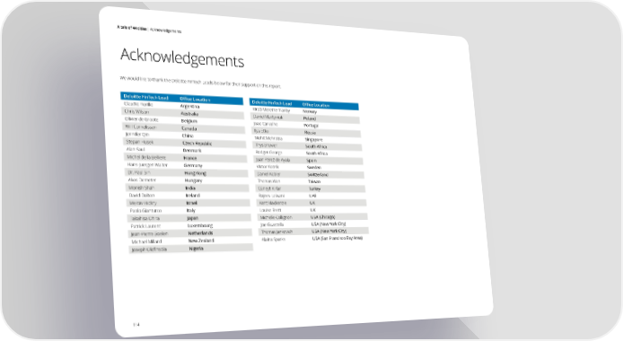 A tale of 44 cities | Acknowledgements Acknowledgements We would like to thank the Deloitte FinTech Leads below for their support on this report. Deloitte FinTech Lead Office Location Deloitte FinTech Lead Office Location Claudio Fiorillo Argentina Kirsti Merethe Tranby Norway Chris Wilson Australia Daniel Martyniuk Poland Olivier de Groote Belgium Joao Carvalho Portugal Will Cornelissen Canada Ilya Etko Russia Jennifer Qin China Mohit Mehrotra Singapore Stepan Husek Czech Republic Thys Bruwer South Africa Alan Saul Denmark Rodger George South Africa Michel de la Belliere France Juan Pérez de Ayala Spain Hans-Juergen Walter Germany Victor Kotnik Sweden Dr. Paul Sin Hong Kong Daniel Kobler Switzerland Akos Demeter Hungary Thomas Wan Taiwan Monish Shah India Cüneyt Kırlar Turkey David Dalton Ireland Rajeev Lalwani UAE Meirav Hickry Israel Kent Mackenzie UK Paolo Gianturco Italy Louise Brett UK Takahisa Ohira Japan Michelle Collignon USA (Chicago) Patrick Laurent Luxembourg Joe Guastella USA (New York City) Jean-Pierre Boelen Netherlands Thomas Jankovich USA (New York City) Michael Millard New Zealand Alaina Sparks USA (San Francisco Bay Area) Joseph Olofinsola Nigeria 114