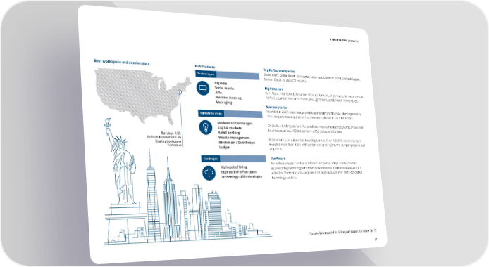 A tale of 44 cities | New York S e l f e v a u l a t i o n o f tH h eu hb u bi in nd i sc High Rankixa t ko e yr s a r e a New Yorks Best workspace and accelerators Hub features Top FinTech companies Hub profile Technologies Betterment, Digital Asset, Kickstarter, Learnvest, Common Bond, OnDeck Capital, Lon Moven, Oscar, Kasisto, CB Insights. do SnG Big data Big investors io Social media nv gaporee r Bain, Nyca, First Round, Bessemer Venture Partners, IA Ventures, Norwest Venture n APIs m e Partners, Canaan Ventures, Silver Lake, Lightyear Capital, North Hill Ventures. Gn l o b a l F Machine learning it Cn es n t r eu 2p Messaging Np ewo Success stories r Yort k Founded in 2007, LearnVest provides award-winning financial planning systems. D Innovation areas Bo The company was acquired by Northwestern Mutual in 2015 for $250m. ui 8sn ig n e s Ss Markets and exchanges i lic on OnDeck, a lending platform for small businesses, has loaned over $2bn to small Va ll ey Capital markets businesses across 700 industries in all 50 states and Canada. As a leading global financial hub, New York has some of the largest and nIn Retail banking on i tINDEX SCOREo Barclays RISE av most established financial services institutions actively investing in, and va FinTech Innovation Lab Wealth management ot Betterment is an automated investing service. Over 120,000 customers have nni o Startupbootcamp collaborating with, a myriad of FinTechs. With Wall Street having both ChicagoI ln Blockchain / Distributed aboxeduc Techstars Ledger invested more than $3bn with Betterment and in 2016 the company was valued the largest capital base and greatest need for FinTech innovation, the lGnI414rutl at $700m. best technology and engineering talent have come together to createe a vibrant and well-funded ecosystem within walking distance of the Challenges The future market they serve.Low Rank High cost of living We will see a large number of FinTech companies adopt a collaborative High cost of office space approach by partnering with financial institutions in order to scale up their Technology skills shortages activities. There may also be growth through acquisition in more developed tise technology sectors. Reper gulao ex tionty t imi rox P Hub representatives Partnership Fund for NYCForeomer ign star to cust Director, FinTechtupsProximity Innovation Lab Sunny Parikh Data to be updated in full report (Sibos, October 2017) 97
