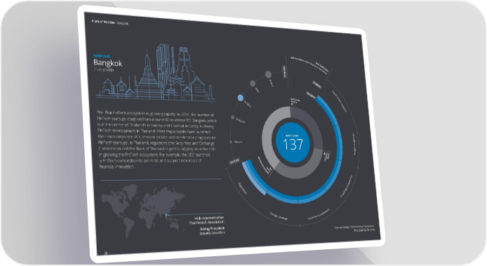 A tale of 44 cities | Bangkok S e l f e v a u l a t i o n o f t H h e u h b u b i i n n d i s c i High Ran x a t k o NEW HUB e y r s a r e a Bangkok s Hub profile k M a dr i M d G il o a v n e r n m e G n l o b a l F i t C n e s Digital Ventures n t r B e u a 3 p n 9 gkok p Dream Office (C-Asean) o r Dtac Accelerate t Krungsri Rise The Thai FinTech ecosystem is growing rapidly. In 2016, the number of B FinTech startups doubled from around 40 to almost 90. Bangkok, which udapest is at the centre of Thailand’s economy and financial industry, is driving In FinTech development in Thailand. Most major banks have launched n INDEX SCORE o v their own corporate VCs, innovation labs and accelerator programs for a t Moscow i o FinTech startups. In Thailand, regulators (the Securities and Exchange c n Commission and the Bank of Thailand in particular) play an active role 137 utlu 64uBoD er in growing the FinTech ecosystem. For example, the SEC launched n enisgni a FinTech competition to promote and support new ideas of k oitav ss financial innovation. Low Ran onnI laboxednI25 lG tise Re per gula o ex tion ty t imi rox P For mers Hub representative eign st o custo Thai Fintech Association artups Proximity t Acting President Jessada Sookdhis Source: Global FinTech Hubs Federation Produced by Deloitte 28