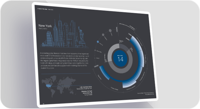 A tale of 44 cities | New York S e l f e v a u l a t i o n o f t H h e u h b u b i i n n d i s c High Rank ix a t k o e y r s a r e a New York s Hub profile Lo n do S n G i o n v gapore e r n m e G n l o b a l F i t C n e s n t r e u 2 p N p ew o r Yor t k D B o u i 8 s n i g n e s S s i lic on Va ll ey As a leading global financial hub, New York has some of the largest and n In o n i t INDEX SCORE o Barclays RISE a v most established financial services institutions actively investing in, and v a FinTech Innovation Lab o t n i o n Startupbootcamp collaborating with, a myriad of FinTechs. With Wall Street having both Chicago I l n aboxed uc Techstars the largest capital base and greatest need for FinTech innovation, the lG nI 4 14 rutl best technology and engineering talent have come together to create e a vibrant and well-funded ecosystem within walking distance of the market they serve. Low Rank tise Re per gula o ex tion ty t imi rox P Hub representative s Partnership Fund for NYC Fore omer ign star to cust Director, FinTech tups Proximity Innovation Lab Sunny Parikh Source: Global FinTech Hubs Federation Produced by Deloitte 96