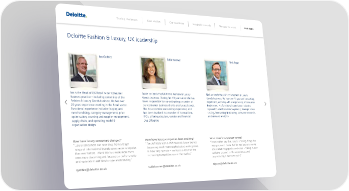 The big challenges Case studies Our wardrobe Insight & research The way we work Next steps €eloitte Žashion & œuxury, ‡K leadership Ian eddes Sukie Kooner Nick Pope an is the ead of ‡K Retail in our ‰onsumer ukie coleads the ‡K firm’s Žashion & œuxury ¢ick coleads the ‡K firm’s Žashion & œuxury ˆusiness practice – including ownership of the ›oods business. €uring her £ª year career she has ›oods business. e has over £« years of consulting Žashion & œuxury ›oods business. e has over been responsible for coordinating a number of experience, working with a large variety of consumer ¥„ years experience working in the Retail sector. our consumer business clients and luxury brands. businesses. is functional experience includes’ Žunctional experience includes’ buying and he has extensive accounting experience, and reputation and brand management, strategic stress merchandising, category management, price has been involved in a number of transactions, testing, forecasting & planning, consumer research, optimisation, sourcing and supplier management, ‘s, offering circulars, vendor and financial and demand analytics supply chain, and operating model & due diligence organisation design How hae luxur consumers change† How hae luxur companies een eoling† What oes luxur mean to ou† “ œuxury consumers can now shop from a larger “ ’ve definitely seen a shift towards luxury brands “ eople often say that luxury is having things the range of international brands across more categories becoming much more sophisticated and rigorous way you want them. ˆut for me luxury is mainly than ever before. think this has made more them in how they operate – mainly as a result of the about enduring ”uality and value – falling in love even more discerning and focused on craftsmanship increasing competitiveness in the market” with the product or the experience, and and materials in addition to style and branding” appreciating it more everyday” igeeseloitte‡co‡uk sukiekoonereloitte‡co‡uk nipopeeloitte‡co‡uk
