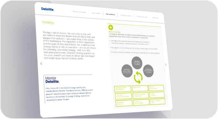 The big challenges Case studies Our wardrobe Insight & research The way we work Next steps ™raeƒy H‚ˆ ˆ c‹ ‰ l† ™raeƒy is abou †hoi†es We „ork sie by sie „ih The range of challenges we help our clients tackle is dierse but our client engagements hae some common characteristics Šor exampleœ our †iens o …ake he †hoi†es ha „i he€ sre†h an shar€en heir a…biion – ƒroune fir…y in he reaiies • We he€ †iens †ari‚y he naure o‚ he o€€oruniy or €robe… o‚ he …arke€a†e he †a€abiiies o‚ heir orƒanisaion ‚re ueny assisinƒ in €roiinƒ ‘sru†ure o he unsru†ure’ an he ƒoas o‚ heir sakehoers We unersan ha • We su€€or †iens in …akinƒ he riƒh sraeƒi† †hoi†es abou hose €robe…s sraeƒy sans or ‚as on exe†uion – an „e are kno„n ‚or eierinƒ ‘exe†uabe sraeƒy’ Wih oer š00 • –ru†iay „e „ork „ih †iens o eeo€ exe†uabe souions o hose €robe…s ei†ae €ra†iioners eoie’s ™raeƒy €ra†i†e has he s†ae breah an e€h o eier ƒenuine i…€a† an insiƒh o our ‚ashion & uxury †iens U‹l‚cki‹ N ˆ S‚Šc € OŒ ‡‚ˆ‰ ki‹ ‰ C‚‹fiŠi‹ ‚€ ‚Œ W‰ ‰ O‹i€i‚‹ Y‚Š H ‡‚ Œ‚ ‡‚ˆ‰ ™in†e «anuary 201š he eoie ™raeƒy ea… has aso TR‘T˜žIC COIC˜ ›RŒWT¥ •AT¥ RE”ENUE in†ue Monior eoie Foune in he eary 1§—0s by a see† TRŸCTŸRINž MANA›EMENT ƒrou€ o‚ ¥arar ‘usiness ™†hoo €ro‚essors Monior eoie has been a he ‚ore‚ron o‚ sraeƒi† hinkinƒ resear†h an –ŒN™UMER NETWŒR¬ FŒŒT•RINT –¥ANNEL innoaion ‚or a…os š0 years •RI–IN› & IN–ENTI”E™ Œ•TIMI™ATIŒN ™TRATE›¨ MAR¬ETIN› •ŒRTFŒLIŒ / TAR›ET Œ•ERATIN› E®–ELLEN–E MAR¬ET RE”IEW MŒEL