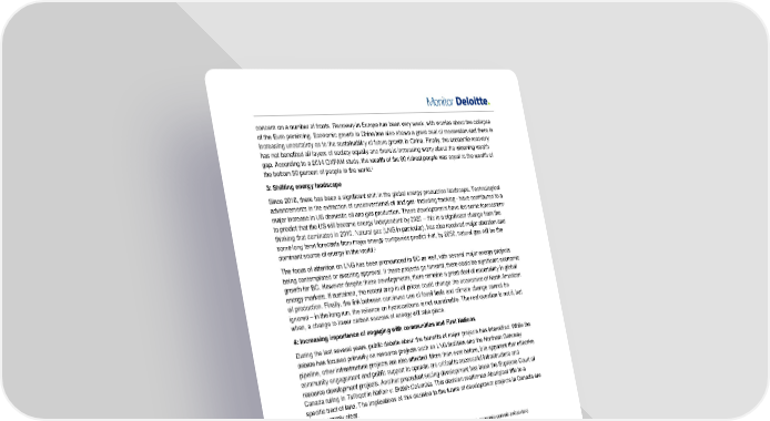 concern on a number of fronts. Recovery in Europe has been very weak, with worries about the collapse of the Euro persisting. Economic growth in China has also shown a great deal of moderation and there is increasing uncertainty as to the sustainability of future growth in China. Finally, the economic recovery has not benefited all layers of society equally and there is increasing worry about the widening wealth gap. According to a 2014 OXFAM study, the wealth of the 80 richest people was equal to the wealth of the bottom 50 percent of people in the world.3 3: Shifting energy landscape Since 2010, there has been a significant shift in the global energy production landscape. Technological advancements in the extraction of unconventional oil and gas- including fracking - have contributed to a 4 major increase in US domestic oil and gas production. These developments have led some forecasters to predict that the US will become energy independent by 2020 – this is a significant change from the thinking that dominated in 2010. Natural gas (LNG in particular), has also received major attention and some long term forecasts from major energy companies predict that, by 2050, natural gas will be the dominant source of energy in the world.5 The focus of attention on LNG has been pronounced in BC as well, with several major energy projects being contemplated or awaiting approval. If these projects go forward, there could be significant economic growth for BC. However despite these developments, there remains a great deal of uncertainty in global energy markets. If sustained, the recent drop in oil prices could change the economics of North American oil production. Finally, the link between continued use of fossil fuels and climate change cannot be ignored – in the long run, the reliance on hydrocarbons is not sustainable. The real question is not if, but when, a change to lower carbon sources of energy will take place. 4: Increasing importance of engaging with communities and First Nations During the last several years, public debate about the benefits of major projects has intensified. While the debate has focused primarily on resource projects such as LNG facilities and the Northern Gateway pipeline, other infrastructure projects are also affected. More than ever before, it is apparent that effective community engagement and public support to operate are critical to successful infrastructure and resource development projects. Another precedent setting development has been the Supreme Court of Canada ruling in Tsilhqot’in Nation v. British Columbia. This decision reaffirmed Aboriginal title to a specific tract of land. The implications of this decision to the future of development projects in Canada are not yet entirely clear. 3 http://www.theguardian.com/business/2015/jan/19/global-wealth-oxfam-inequality-davos-economic-summit-switzerland 4 http://finance.yahoo.com/news/top-sectors-for-trading-a-domestic-energy-boom-195935484.html 5 Shell Scenarios 2014 – Mountains and Oceans Port 2050 Scenario Update Initiative - 2015 7
