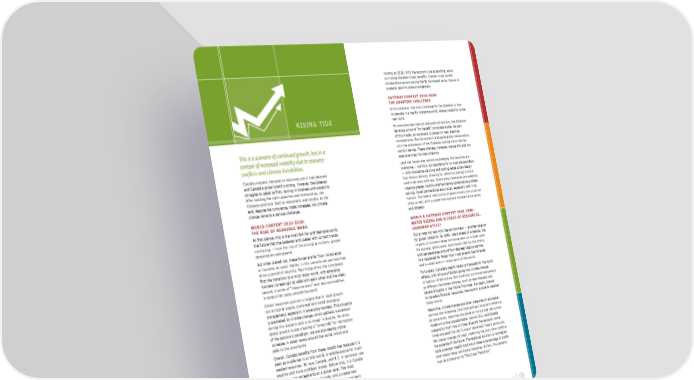 months by 2030. With the economic pie expanding, every port along the West Coast benefits. Greater cross-border collaboration occurs among Pacific Northwest ports, thanks to a special security zone arrangement. gAteWAy context 2010-2030: the AdAptiVe chAllenge in this scenario, the main challenge for the gateway is how to operate in a rapidly changing world, where instability is the rising tide new norm. to overcome key internal and external barriers, the gateway develops a hybrid “for-benefit” corporate model. As part of this model, an emphasis is placed on new adaptive competencies, flexible systems and good global relationships, This is a scenario of continued growth, but in a with the complexion of the gateway looking more like the context of increased volatility due to resource world it serves. these changes, however, are painful and not everyone likes this new direction. conflicts and climate instabilities. land use issues also remain challenging. but tensions are canada prospers, because its resources are in high demand overcome — not fully, but satisfactorily to most stakeholders and canada’s global brand is strong. however, the gateway — with innovative planning and cutting-edge urban design that favours density, allowing for industrial and agricultural struggles to adapt at first, lacking nimbleness and scalability. after building the right capacities and relationships, the land to do more with less. community champions are essential, gateway positions itself as resourceful and reliable. at the creating greater visibility and facilitating collaborative problem end, despite the turbulence, trade increases, but climate solving. novel partnerships are crucial, especially with First change remains a serious challenge. nations. the federal and provincial governments are proactive allies as well, with a supportive national transportation policy World context 2010-2030: and strategy. the rise of resource WArs World & gAteWAy context 2030-2050: At first glance, this is the most familiar and desirable world, WAter rising And A curse of resources, the future that the gateway anticipates with current trends continuing — from the rise of the emerging markets, greater cAnAdiAn style? globalization and growth. but all was not well with the environment — another catalyst but when played out, these forces are far from incremental for global instability. by 2040, years ahead of schedule, the or business as usual. rather, in this scenario we see how they impacts of climate change are being seen on a large scale. drive a period of volatility. two things drive this turbulence: on average, global water levels have risen by one metre, with temperatures around four degrees celsius warmer. first the transition to a multi-polar world, with emerging this happened far faster than most experts had forecast markets increasingly at odds with each other and the West; and is catastrophic in many parts of the world. second, a series of “resource wars” over key commodities in several hot spots around the world. Fortunately, canada’s wealth helps compensate for the worst global resources scarcity is largely due to rapid growth effects, with billions of dollars going into climate change out-stripping supply, combined with failed ecological mitigation infrastructure. but hardships are found everywhere management, especially in emerging markets. this situation as different challenges emerge, such as new diseases and is acerbated by climate change, which gathers momentum severe droughts in the Prairie Provinces. but again, thanks during this scenario and is no longer in dispute. so while to Canada’s financial resources, the country is able to weather global growth is also creating a “rising tide” for the bottom these shocks. of the economic paradigm, we are also seeing visible Meanwhile, climate change and other pressures on ecological increases in water levels around the world, which only services are increasing, thus highlighting a long-term dilemma. adds to the uncertainty. at some point, resources are going to run out and the current model will prove unsustainable. how will b.c. and canada Overall, Canada benefits from these instabilities because it is prepare for this? how will they diversify the economy while seen as a safe bet in a risky world, a reliable source for much times are good? as the “curse of resources” theory points out, needed resources. by now, canada, and b.c. in particular, are few places manage this well, preferring the short-term profit at wealthy and more confident places. Before long, it is Canada the expense of the future. the eventual solution: a norwegian- brokering key agreements at a global level. the most prominent deal is the arctic accords, which create new style sovereign wealth fund which takes a percentage of profits international standards for shipping through the northern and invests these into future industries. in fact, this scenario passageways, since they became navigable for the summer may be a precursor to “the great transition.” 17 18
