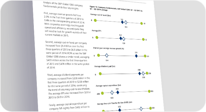 6 | The Deloitte M&A Index Q4 2014 7 | Corporate barometer Analysis of the S&P Global 1200 company Figure 10. Company fundamentals, S&P Global 1200: Q1 – Q3 2013 vs. fundamentals yields four key insights: Q1 – Q3 2014 average Average cash in hand ($bn) First, average revenue growth fell from 5.9 2.0% in the first three quarters of 2013 to 0 10 0.4% in the corresponding period of 2014. With corporates seemingly reaching peak 6.5 operational efficiency, we anticipate they Average EPS will need to look for growth outside of their 0.8 current markets in 2015. 0 1.5 Second, average cash in hand per company 0.9 increased from $5.9 billion over the first Year-on-year average revenue growth (%) three quarters of 2013 to $6.5 billion in the 2.0 same period of 2014. FCFF across the S&P 2.5 Global 1200 shows a similar trend, averaging 0 $433 million across the first three quarters 0.4 of 2013 and $478 million in the same period of 2014. Average dividend paid ($m) 208 Third, average dividend payments per 0 250 company increased from $208 million in the 228 first three quarters of 2013 to $228 million for the same period of 2014, continuing Average capital expenditure ($m) the trend of returning cash to shareholders. 432 The average EPS also increased from $0.8 in 500 2013 to $0.9 in 2014. 400 420 Finally, average capital expenditure per Average free cash flow for the firm (FCFF) ($m) company fell slightly from $432 million to 433 $420 million. 500 400 478 Q1 – Q3 2013 average Q1 – Q3 2014 average Source: Bloomberg; Deloitte analysis